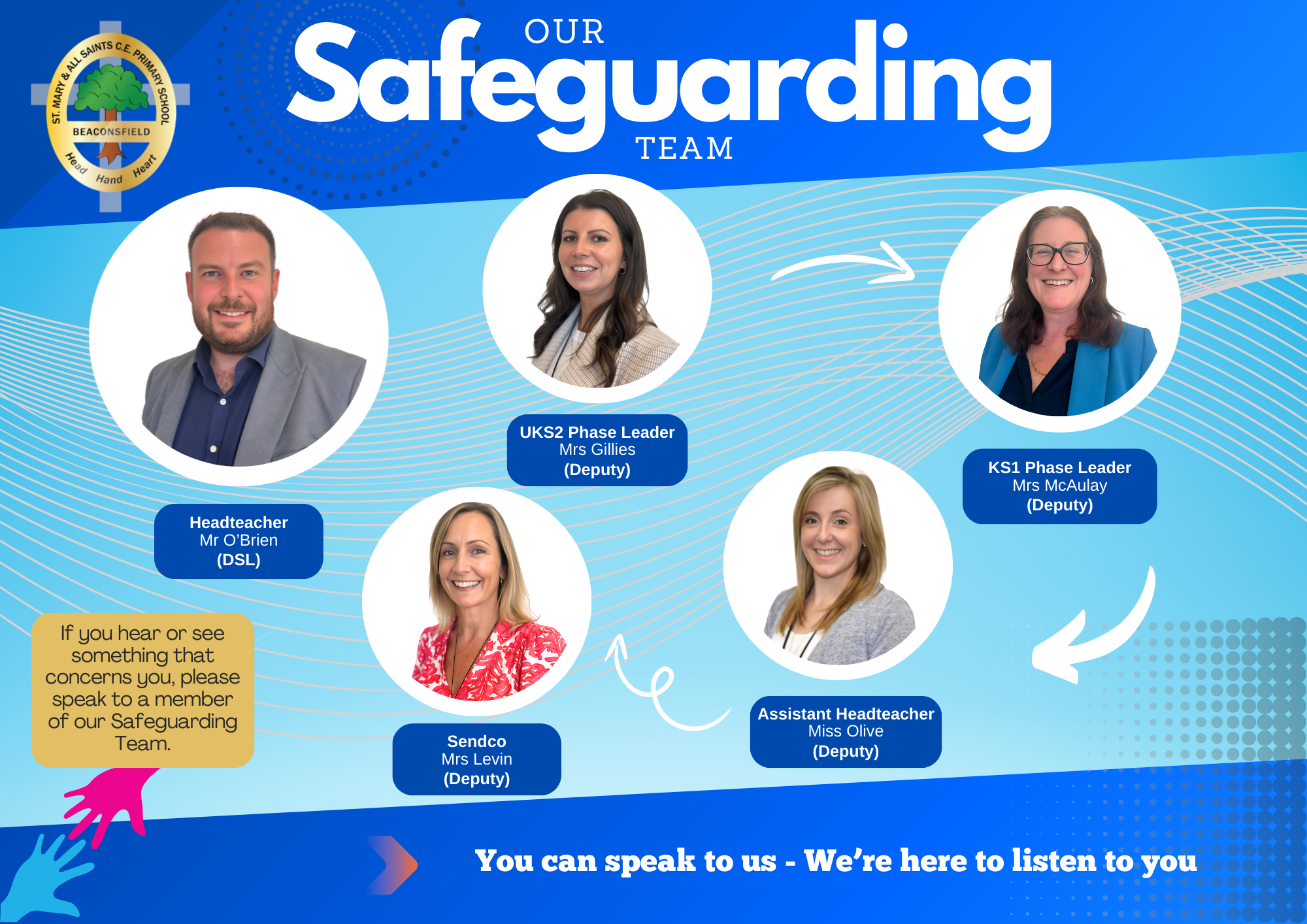 If you feel concerned about any child, please speak to one of our Designated Safeguarding Leads (see above).