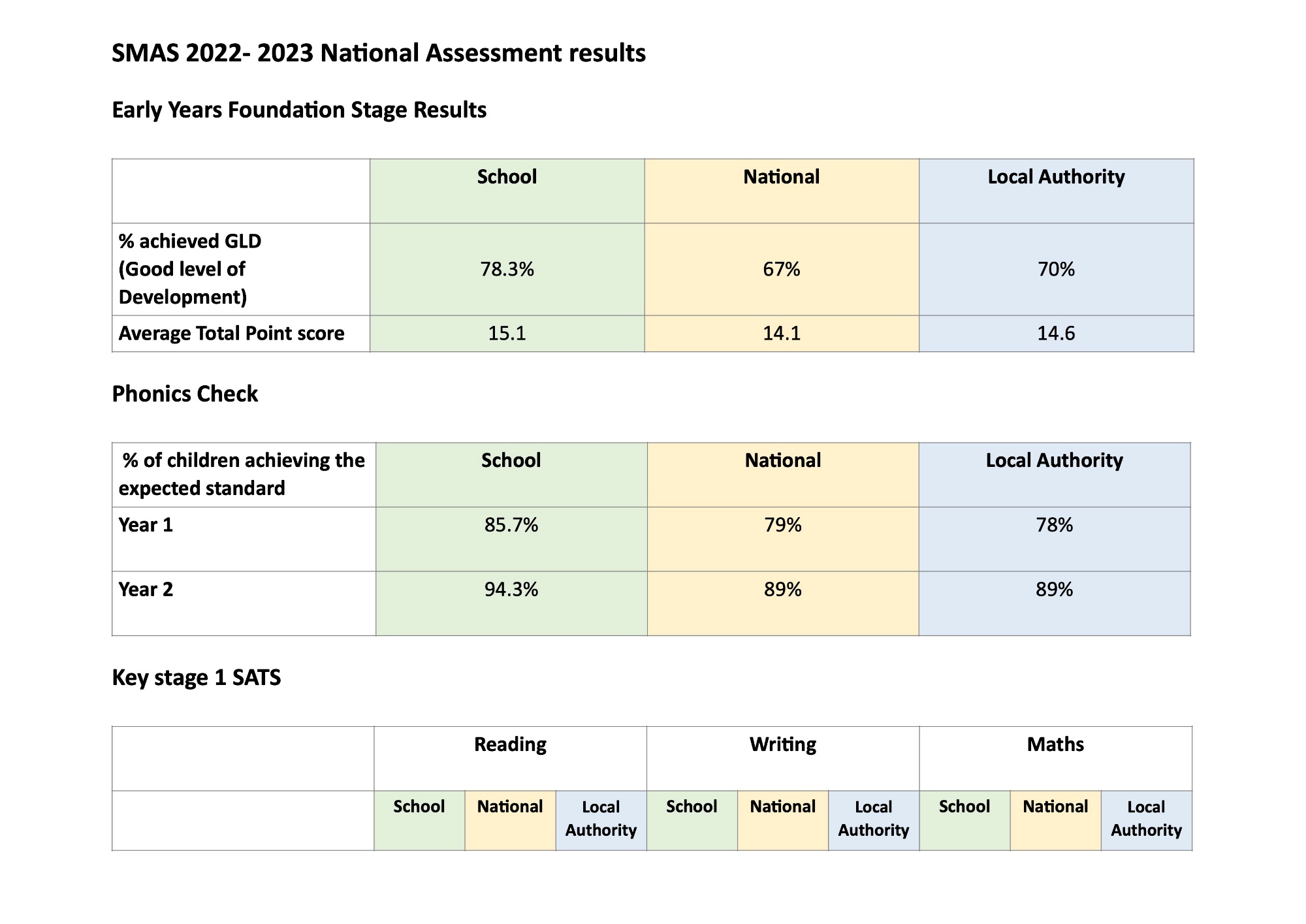 Here you will be able to find out key information about the school's performance. This includes information about the end of Key Stage 1 and Key Stage 2 results. Please click here to visit the Department for Education School Performance page. Please click here to compare the performance of schools and colleges in England. Please click here to compare the school income and expenditure with similar establishments in England (Financial Benchmarking). Key phases of the school from 2023 are available below.